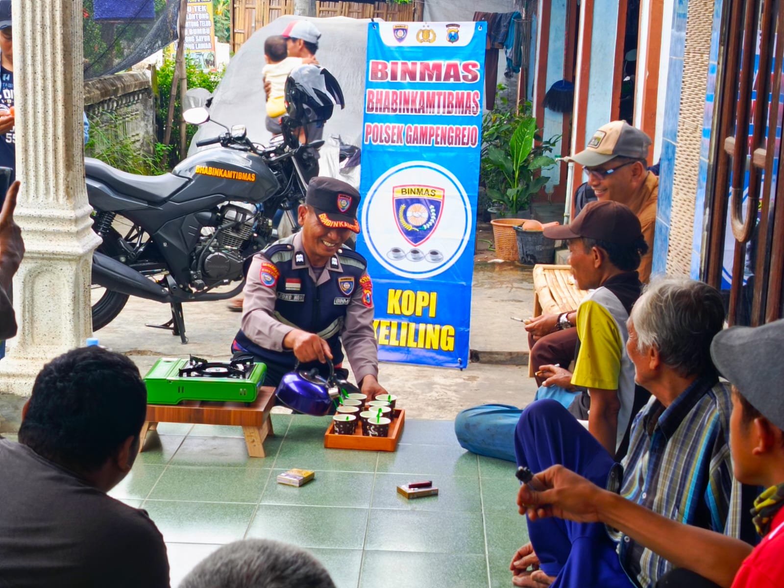kopi keliling, sebuah program yang mengajak warga berdiskusi santai sambil menikmati secangkir kopi, dan sekaligus menyampaikan himbauan Kamtibmas tentang pentingnya kerukunan antar warga masyarakat, dan sebagai wujud Bhabinkamtibmas Polri selalu dekat dan hadir di tengah-tengah masyarakat dalam situasi apapun, serta sebagai sarana dialogis dengan warga masyarakat perdesaan guna menyerap informasi tentang gangguan Kamtibmas dan gejolak sosial yang muncul di masyarakat, untuk diketahui dan sebagai bahan tindak lanjut Ke instansi terkait maupun Ke instansi Kepolisian.