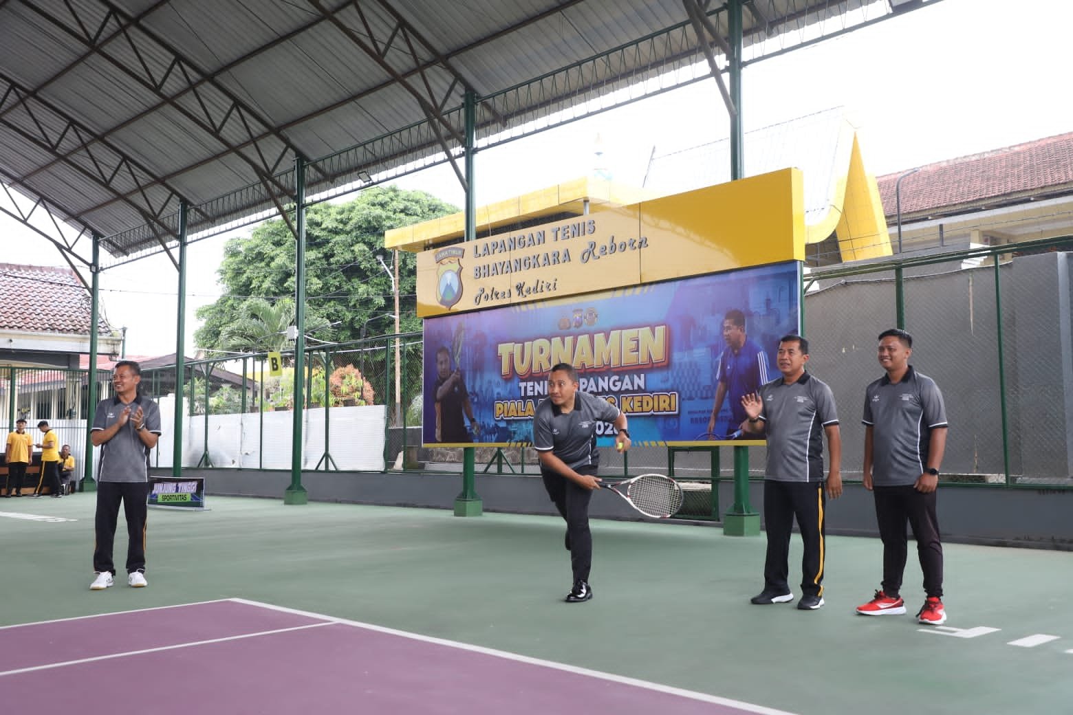 Turnamen dibuka langsung oleh Kapolres Kediri AKBP Bramastyo Priaji, S.H., S.I.K., M.Si., didampingi Wakapolres Kediri Kompol Hari Kurniawan, S.H., M.H. Kegiatan ini diikuti para Pejabat Utama (PJU) Polres Kediri, Kapolsek jajaran, serta peserta turnamen tenis lapangan, dengan kehadiran perwakilan KONI Kabupaten Kediri.