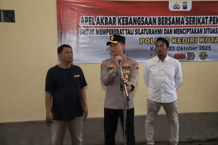 Tribunpost.co || Kediri Kota – Dalam upaya memperkuat sinergitas antara kepolisian dan elemen pekerja, Polres Kediri Kota menggelar Apel Akbar Bersama Serikat Pekerja dan Buruh yang berlangsung di halaman CV. Anara, Jl. Tirtosari, Kelurahan Tosaren, Kecamatan Pesantren, Selasa (21/10).