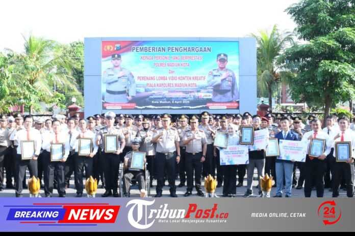Tribunpost.co || KOTA MADIUN – Polres Madiun Kota Polda Jawa Timur memberikan apresiasi dan penghargaan kepada Bripda Prasetywanto Sakti Aji yang akrab disapa Sakti, anggota Satuan Lalu Lintas yang sempat viral usai insiden bus yang melindas kakinya saat bertugas.