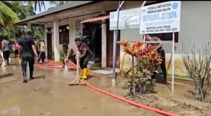 Kapolres Pidie Jaya AKBP Ahmad Faisal Pasaribu melalui Kasi Humas Polres Pidie Jaya AKP Mahruzar Hariadi menyampaikan bahwa pemulihan pascabencana ini mengutamakan pembersihan fasilitas pendidikan agar dapat segera difungsikan kembali, sejalan dengan Surat Edaran Dinas Pendidikan Provinsi Aceh yang menetapkan Proses Belajar Mengajar dapat kembali dilaksanakan pada Senin, 5 Januari 2026 bagi sekolah yang telah dinyatakan layak.