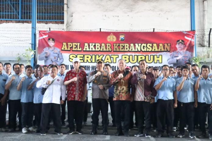 Tribunpost.co || Kota Mojokerto – Ratusan buruh dari berbagai serikat pekerja di Kota Mojokerto berkumpul dalam satu barisan besar untuk mengikuti Apel Akbar Kebangsaan Buruh yang digagas oleh Polres Mojokerto Kota bertempat di PT. Intidragon Suryatama 2 Kota Mojokerto, Kamis (23/10/25)