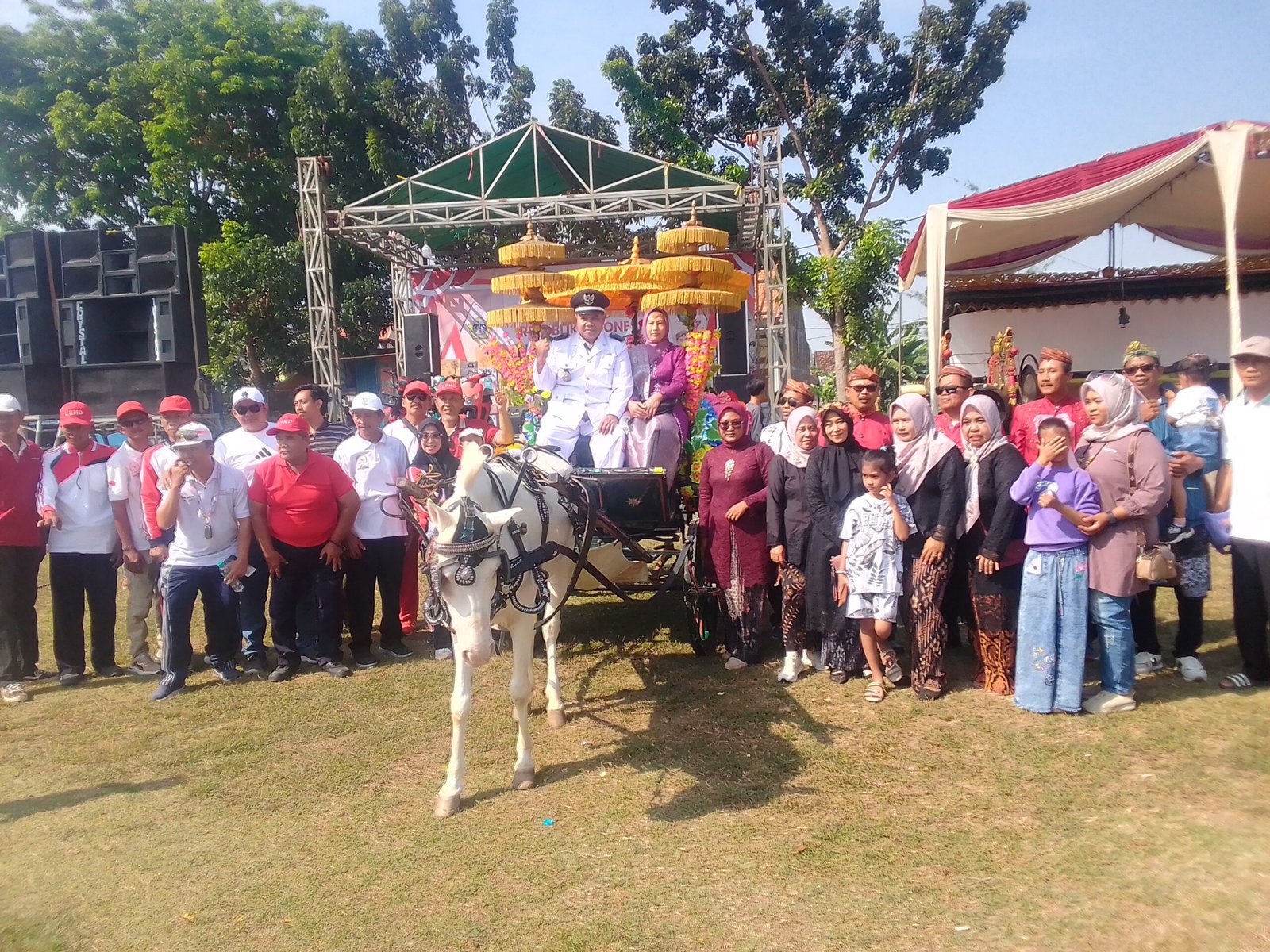Menambah kemeriahan, Kepala Desa Sukayin bersama istri menaiki kereta bunga yang ikut mengiringi jalannya karnaval. Kehadirannya menjadi pusat perhatian warga sekaligus simbol kebersamaan dan semangat gotong royong masyarakat Pelemwatu.