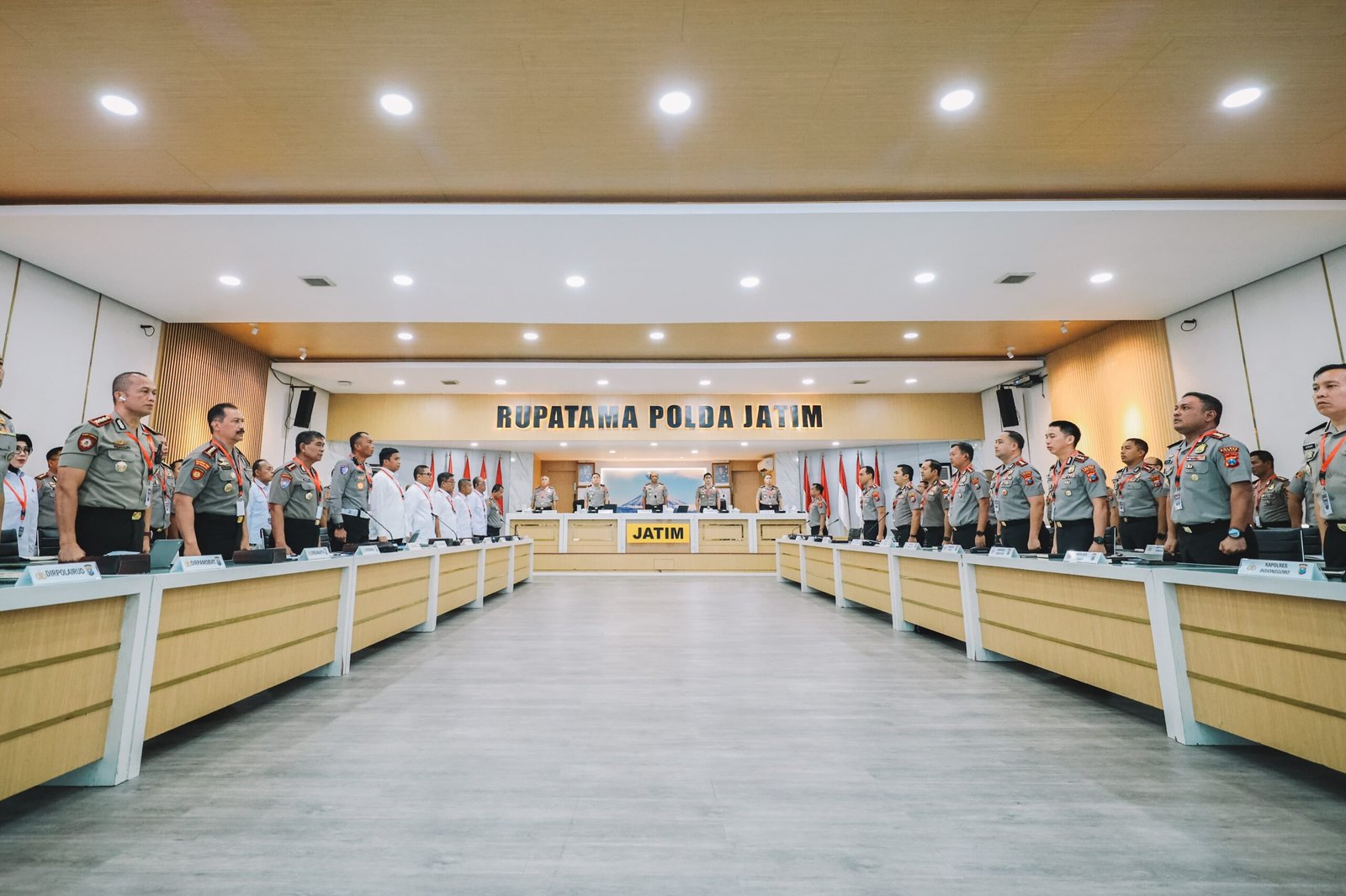 Rapim dipimpin langsung oleh Kapolda Jatim Irjen Pol. Drs. Nanang Avianto, M.Si., turut hadir Wakapolda dan Pejabat Utama Polda Jatim serta Kapolres jajaran, termasuk Kapolres Kediri AKBP Bramastyo Priaji, S.H., S.I.K., M.Si.