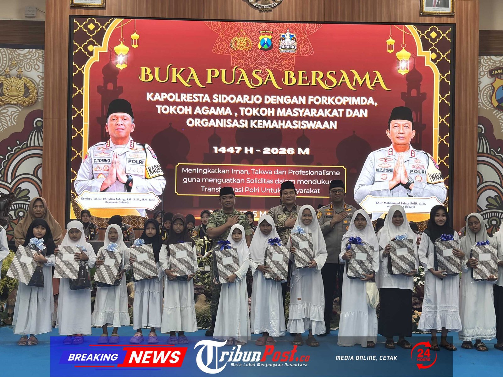 Sidoarjo – Dalam rangka mempererat silaturahmi di bulan suci Ramadan 1447 H, Kapolresta Sidoarjo menggelar kegiatan Gebyar Buka Puasa Bersama yang dihadiri unsur Forum Koordinasi Pimpinan Daerah (Forkopimda), tokoh agama, tokoh masyarakat, serta organisasi kemahasiswaan.