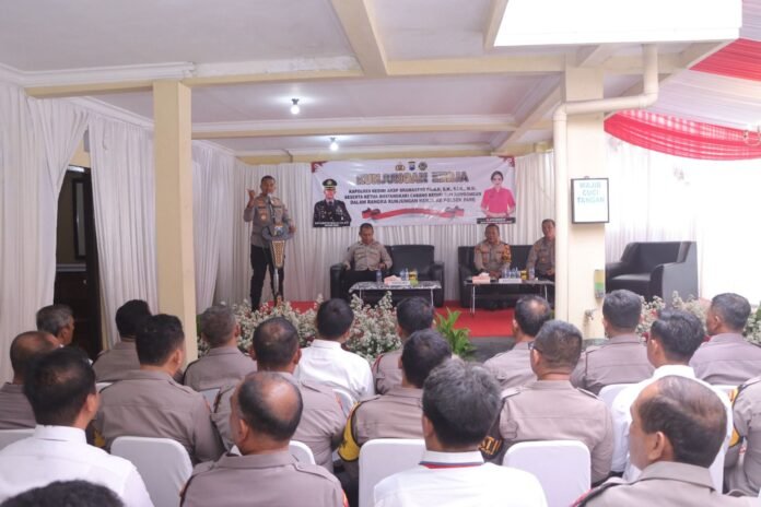 “Pelayanan yang baik itu dimulai dari solidnya internal. Kalau anggota rukun, bekerja dengan hati, masyarakat pasti akan merasakan dampaknya,” ucap AKBP Bramastyo memberikan sambutan.