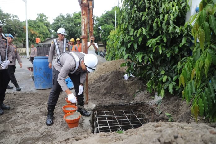 Peletakan batu pertama pembangunan videotron dipimpin langsung Kapolres Kediri AKBP Bramastyo Priaji, S.H., S.I.K., M.Si., didampingi Wakapolres Kediri Kompol Hari Kurniawan, S.H., M.H., serta diikuti para Pejabat Utama (PJU) Polres Kediri.