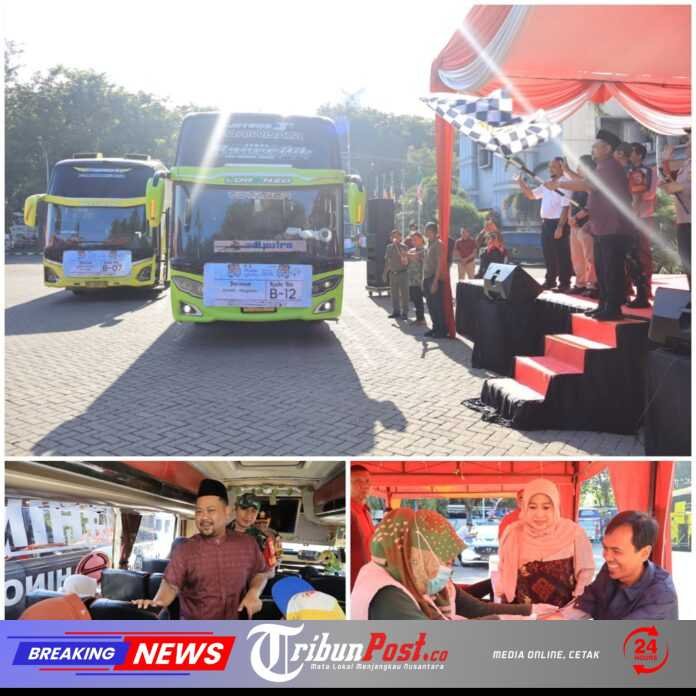 GRESIK , TRIBUNPOST. CO – Pemerintah Kabupaten Gresik kembali menggelar program Mudik Gratis 2026 dengan memberangkatkan 15 armada bus dari Halaman Kantor Bupati Gresik, Rabu (18/03/2026). Sebanyak 750 pemudik diberangkatkan menuju tujuh rute perjalanan di berbagai daerah di Jawa Timur.