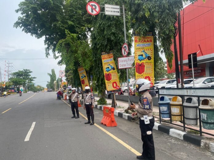 Patroli ini bertujuan memantau arus lalu lintas serta menertibkan parkir liar di Jl. Hasanuddin dan Jl. Brawijaya, Kota Kediri.