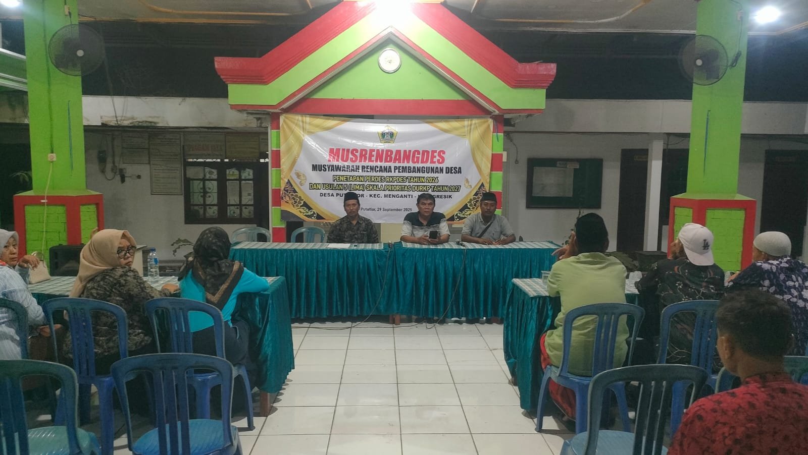 Pemerintah Desa (Pemdes) Putat Lor, Kecamatan Menganti, menggelar Musyawarah Rencana Pembangunan Desa (Musrenbangdes) pada Senin malam (29/9/2025) bertempat di balai desa setempat. Kegiatan ini menjadi wadah bersama antara perangkat desa, Badan Permusyawaratan Desa (BPD), tokoh masyarakat, RT/RW, serta perwakilan warga untuk membahas penetapan Peraturan Desa (Perdes) tentang Rencana Kerja Pemerintah Desa (RKPDes) tahun 2026 sekaligus menyusun daftar usulan Rencana Kerja Pembangunan (DURKP) tahun 2027.