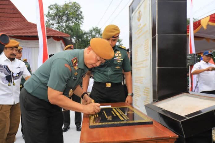 Tribunpost.co || Mojokerto. – Monumen sejarah perjuangan Korp Arhanud TNI-AD Plat Gombrek berdiri megah di Dusun Sidolegi Desa Parengan Kecamatan Jetis Kabupaten Mojokerto, sebagai simbol semangat juang dan nasionalisme yang tak pernah padam. Monumen tersebut diresmikan pada Rabu (3/12/25) oleh Danpussen Arhanud Mayjen TNI R. Edi Setiawan dan dihadiri oleh Brigjen TNI Saipul Mukti Ginanjar (Irpussen Arh) . Brigjen TNI I Made Suryawan. S.sos. M.A. (Danpusdik Arhanud).