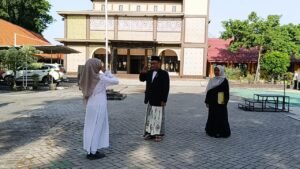 ‎Sejak pagi, halaman sekolah telah dipadati siswa yang mengenakan busana santri. Para siswa laki-laki tampil rapi dengan sarung, kopyah, dan baju takwa, sementara para siswi terlihat anggun dengan busana muslim. Senyum, tawa, dan sapaan terdengar di berbagai sudut halaman, menambah hangatnya suasana kebersamaan.