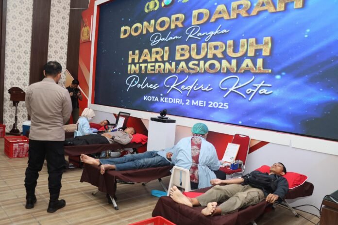 Teibunpost.co || KOTA KEDIRI – Polres Kediri Kota Polda Jatim bersama serikat pekerja yang bekerja sama dengan PMI (Palang Merah Indonesia) Kota Kediri menggelar donor darah dalam rangka memperingati hari buruh Internasional, Jum’at (2/5/2025)