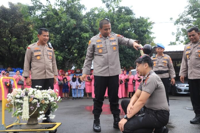Pada acara tersebut, setelah dilakukan upacara kenaikan pangkat yang dipimpin langsung oleh Kapolres Kediri AKBP Bimo Ariyanto S.H., S.I.K, dilakukan tradisi siraman bunga kepada personel yang naik pangkat.