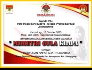 Tulungagung,Tribunpost.co – Pada Hari Kamis Legi 16/10/25 , Salah Satu Desa Dikawasan Kabupaten Tulungagung ,Tepatnya Di Dusun Ringinsari Desa Ringinpitu Kecamatan Kedungwaru Kabupaten Tulungagung , Lagi Lagi Sangat Menarik Perhatian dikalangan Masyarakat Dan hadirnya tamu undangan dari Para Pelaku Serta Pemerhati Budaya serta perwakilan kelompok Paguyuban Atau Yayasan Di Seluruh Wilayah Daerah Jawa Timur , Bahkan Dari Jawa Tengah Juga Turut Ikut Serta Hadir.