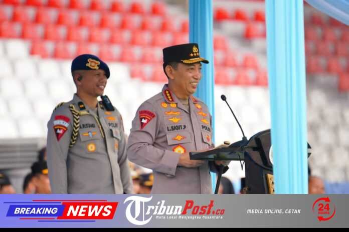 Tribunpost.co || Sumsel – Kapolri Jenderal Listyo Sigit Prabowo memimpin apel ojek online (ojol) dan buruh kamtibmas ‘Nyago Bumi Sriwijaya Aman Bae’ di Stadion Bumi Sriwijaya, Kota Palembang, Sumatera Selatan (Sumsel). Dalam kegiatan ini, Ia menekankan bahwa, untuk terus menjaga nilai persatuan-kesatuan hingga stabilitas nasional.