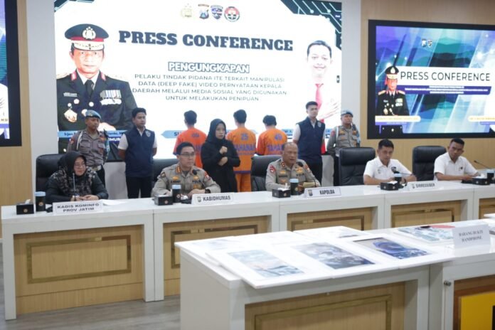 Pada kesempatan yang sama, Dirressiber Kombes Pol Bagoes Wibosono mengatakan, telah menangkap Tiga orang tersangka atas kasus manipulasi data (Deep Fake) yang mengatasnamakan Gubernur Jatim, Khofifah Indar Parawansa.