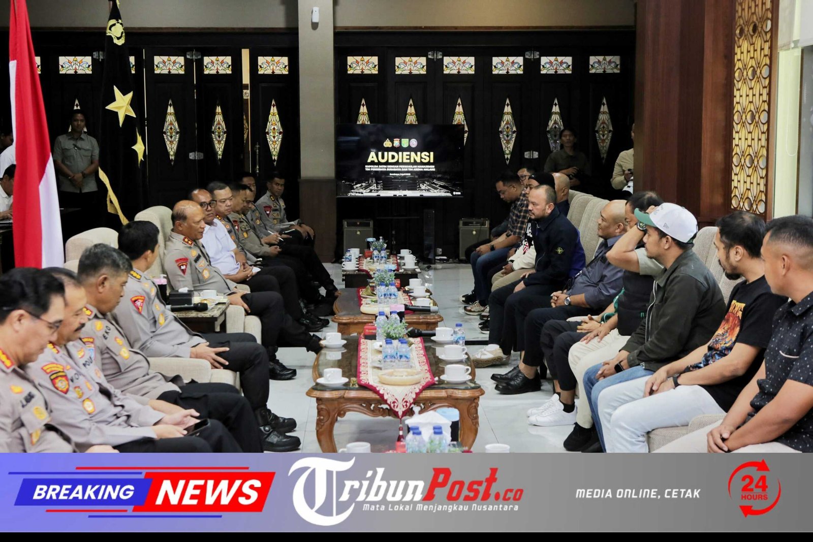 Tribunpost.co || SURABAYA – Polda Jawa Timur mempertemukan manajemen Persebaya Surabaya dan Arema Malang dalam forum silaturahmi strategis di Ruang Selasar Polda Jatim, Rabu (1/4/2026), guna memperkuat komitmen menjaga kondusivitas jelang laga BRI Super League 2025/2026 di Stadion Kanjuruhan, 28 April mendatang.