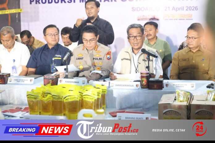 Tribunpost.co || SURABAYA – Direktorat Reserse Kriminal Khusus (Ditreskrimsus) Polda Jatim mengungkap kasus tindak pidana produksi minyak goreng sawit merk MinyaKita ilegal yang tidak memenuhi standar mutu, label, dan takaran.