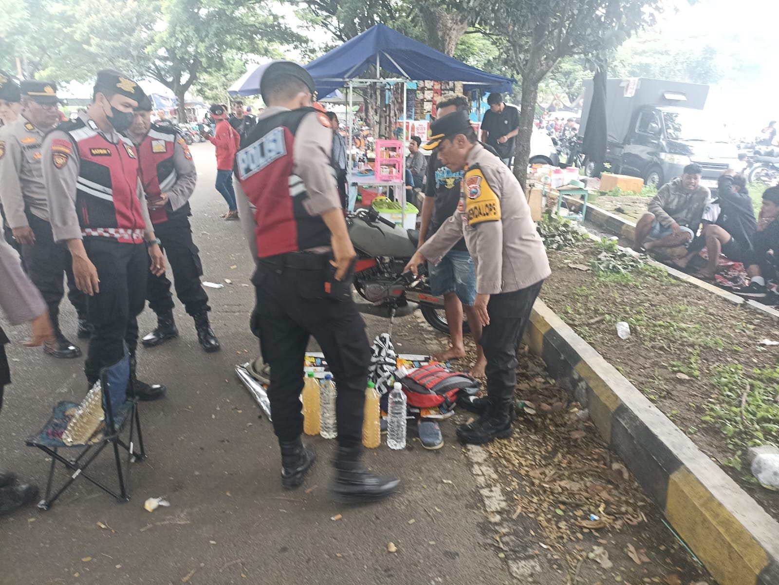 ” Jadi untuk para penonton ini banyak yang membeli minuman keras di sana. Seluruh minuman keras kemasan botol air mineral yang ia jual kemudian kita sita,’ jelasnya..
