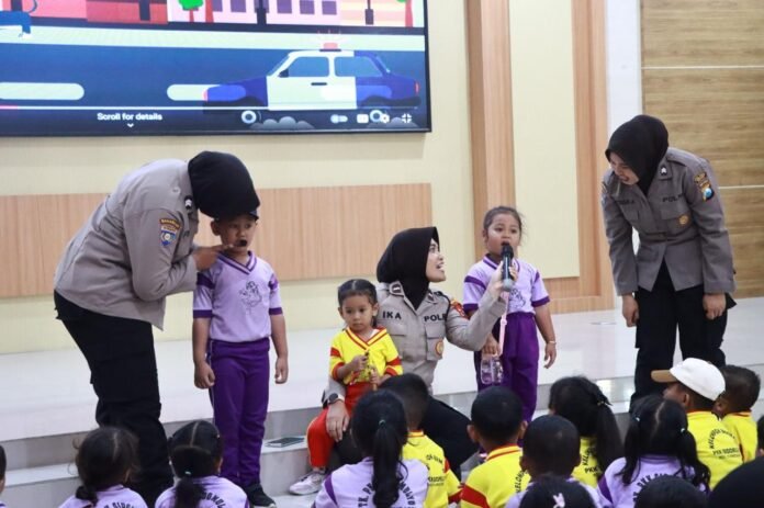 Tribunpost.co || KEDIRI – Polres Kediri Polda Jatim menggelar kegiatan ‘Polisi Sahabat Anak’ dengan menerima kunjungan dari TK PKK Sidomulyo, Kecamatan Purwoasri, Kabupaten Kediri.