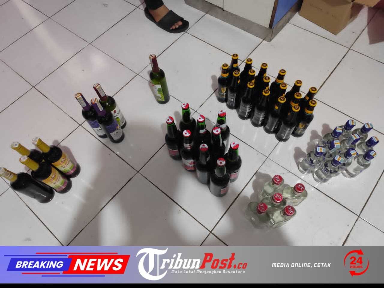 Hasilnya, puluhan botol minuman keras berbagai merek berhasil diamankan.