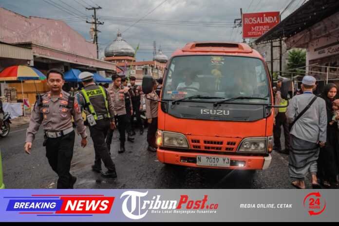 Selain pengamanan, petugas juga melakukan pengaturan lalu lintas serta memberikan imbauan kepada para jamaah untuk tetap menjaga ketertiban selama kegiatan berlangsung.