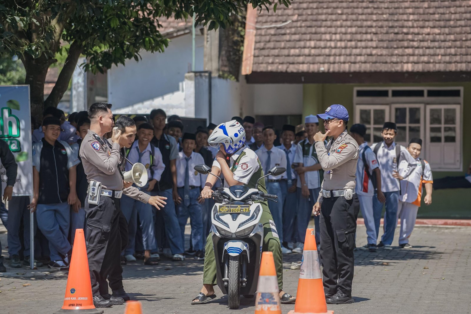 Kapolres Jember AKBP Bobby A. Condroputra melalui Kasat Lantas Polres Jember, AKP B Bagas Simamarta, menyampaikan bahwa kegiatan ini merupakan bagian dari komitmen Polres Jember Polda Jatim untuk menanamkan budaya tertib lalu lintas sejak dini, khususnya di kalangan pelajar.