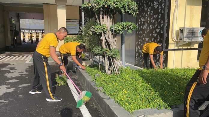 Tribunpost.co || Kediri Kota – Usai melaksanakan olahraga bersama, Polres Kediri Kota menggelar kegiatan kerja bakti membersihkan lingkungan kerja pada Jumat (6/2/2026). Kegiatan ini dilaksanakan sebagai bentuk dukungan terhadap Gerakan Indonesia ASRI (Aman, Sehat, Resik, dan Indah).