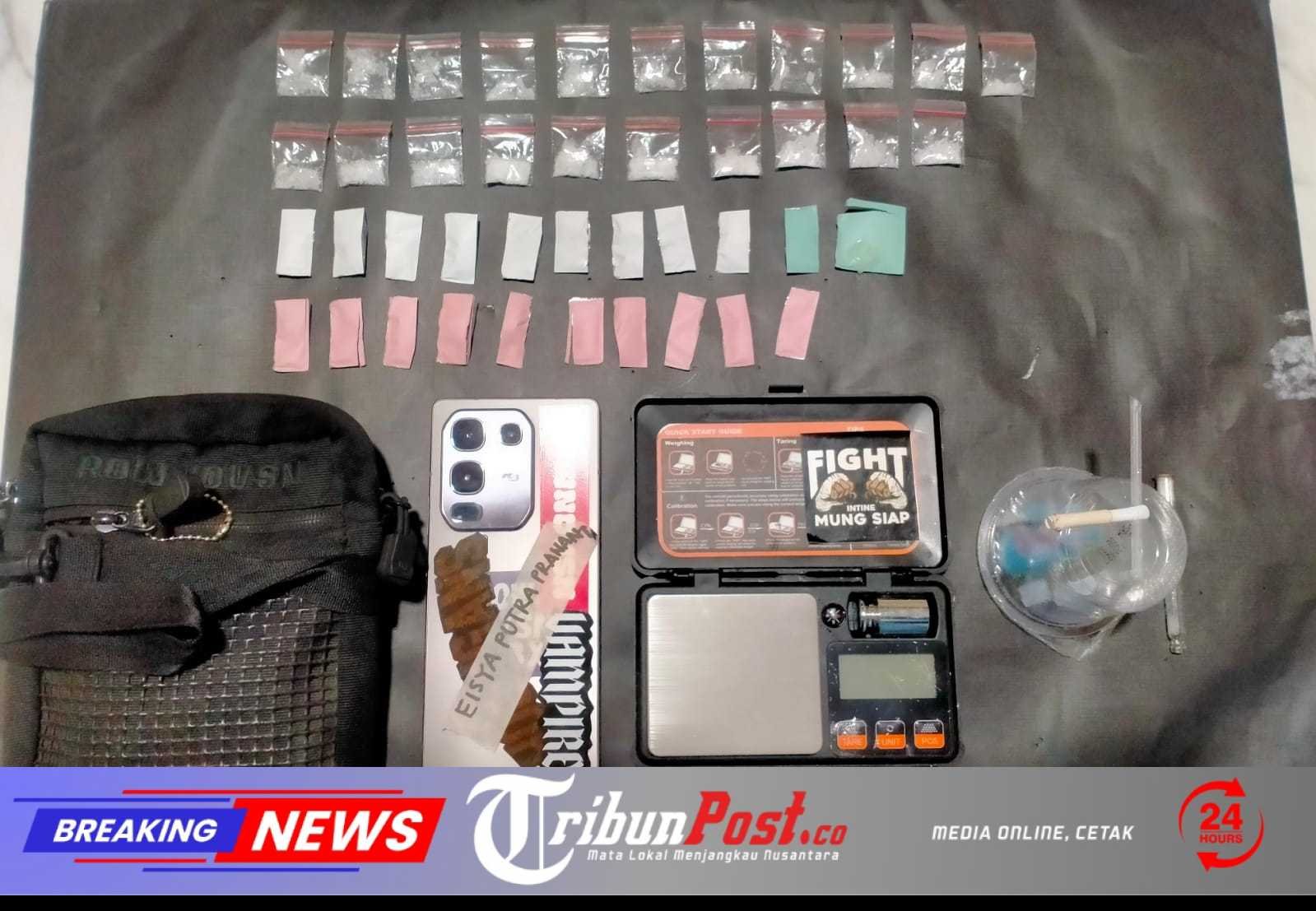 Selain itu, turut diamankan sejumlah barang bukti lain seperti alat hisap, pipet kaca, timbangan digital, hingga ponsel yang diduga digunakan untuk transaksi.