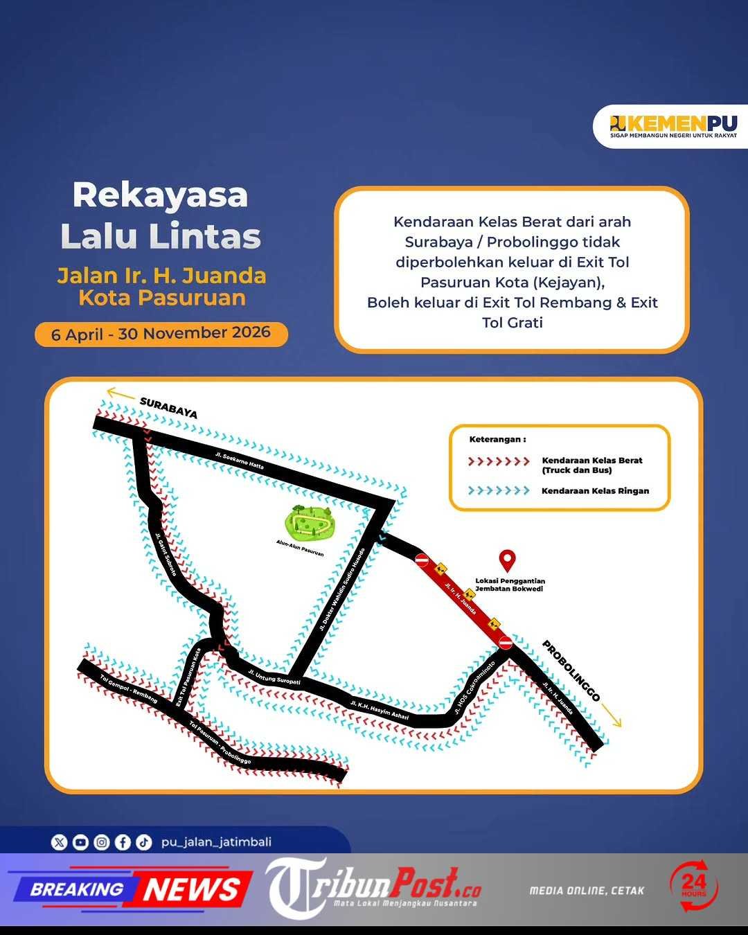 Kebijakan ini dilakukan sebagai dampak dari pembongkaran Jembatan Bok Wedi yang terletak di Jalan Raya Ir H Juanda, Kelurahan Blandongan, Kecamatan Bugulkidul, Kota Pasuruan, menjadi akses vital bagi masyarakat.