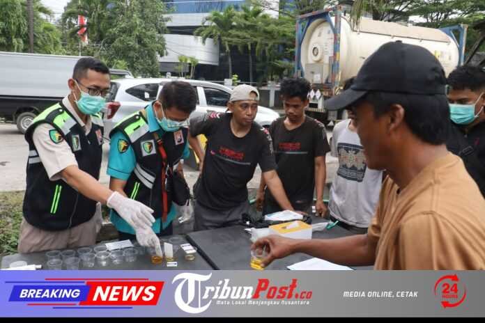 Sebanyak 43 orang pengemudi angkutan baik penumpang maupun barang dilakukan tes urine di dua lokasi.