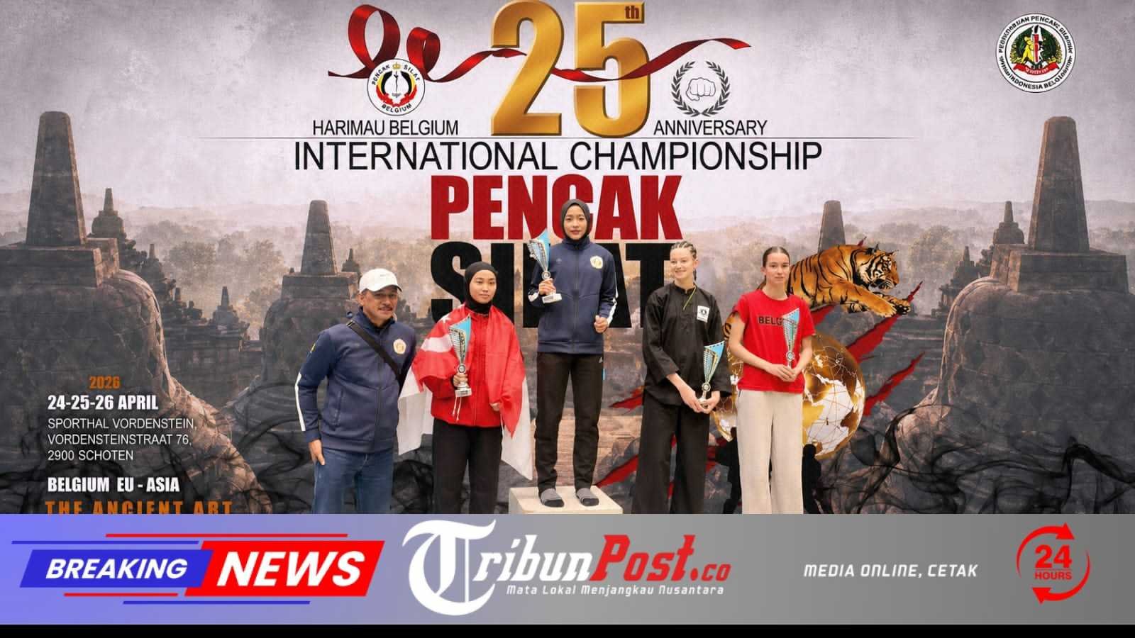 Tribunpost.co || Jakarta, 28 April 2026 — Prestasi membanggakan kembali ditorehkan Tim Nasional Pencak Silat Indonesia dalam ajang Belgium Open Pencak Silat Championship 2026 yang berlangsung pada 24–27 April 2026 di Schoten, Belgia. Kontingen Pelatnas Pencak Silat Indonesia yang diperkuat 9 atlet dan 2 pelatih berhasil meraih total 4 medali emas dan 1 medali perak, sekaligus menegaskan Indonesia sebagai kekuatan utama pencak silat dunia.