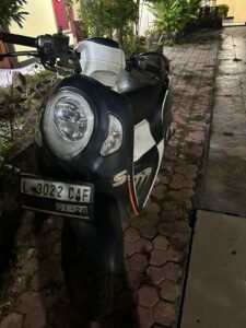 1 unit sepeda motor Honda Scoopy warna putih-biru beserta STNK