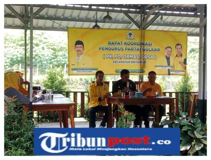 Pengurus Partai Golkar Kecamatan Driyorejo resmi memperkenalkan susunan pengurus baru masa jabatan 2025–2030 dalam kegiatan Rapat Koordinasi yang digelar di Perumahan Sumput Asri, Desa Sumput, Kecamatan Driyorejo, Minggu (7/12/2025).
