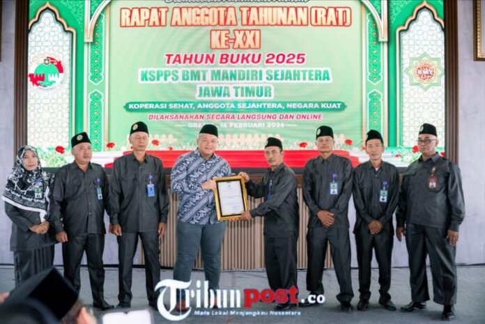 Koperasi simpan pinjam dan pembiayaan syariah KSPPS BMT Mandiri Sejahtera Jatim menggelar Rapat Anggota Tahunan (RAT) ke-XXI Tahun Buku 2025 di kantor pusat Desa Karang Cangkring, Kecamatan Dukun, Kabupaten Gresik, Senin (16/2025). Pada RAT tersebut, BMT Mandiri Sejahtera Jatim membukukan total aset sebesar Rp342.649.244.720.