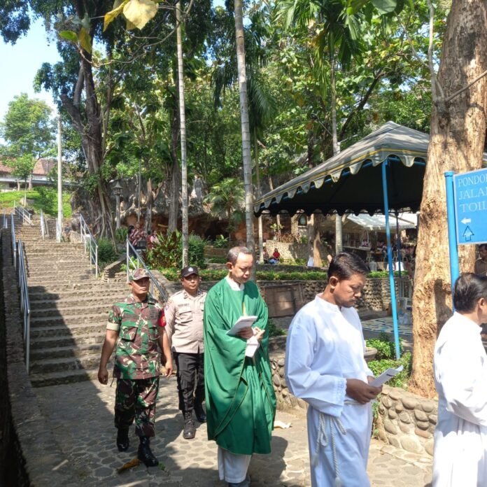 Bertempat di Gereja Puhsarang Kec Semen, Kab Kediri, Polsek Semen Polres Kediri Kota Kota bersama Koramil Semen melaksanakan pengamanan dan silaturahmi dalam rangka memberikan rasa aman kepada umat Nasrani yang sedang beribadah, Minggu (13/07).