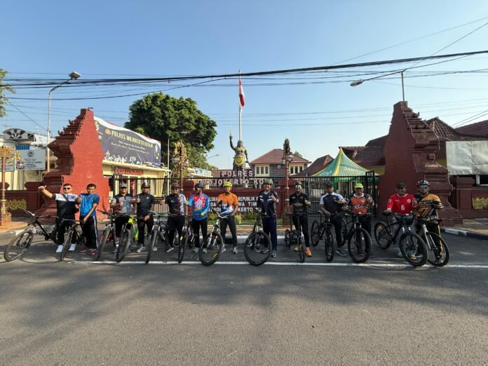 Tribunpost.co || Kota Mojokerto – Dalam suasana pagi yang sejuk dan penuh semangat, Kapolres Mojokerto Kota AKBP Herdiawan Arifianto, S.H., S.I.K., M.H., bersama Pejabat Utama (PJU), m elaksanakan kegiatan bersepeda atau gowes yang bertajuk “Ting Ting – Kring Kring Polres Mojokerto Kota Gowes Menyapa Masyarakat” dengan menyusuri sejumlah ruas jalan di Kota Mojokerto.