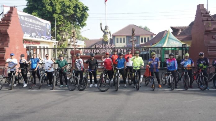 Tribunpost.co || Kota Mojokerto – Dalam suasana pagi yang masih sejuk disela-sela masyarakat sedang melaksanakan aktifitas, Kapolres Mojokerto Kota AKBP Herdiawan Arifianto, S.H., S.I.K., M.H., bersama Pejabat Utama (PJU), melaksanakan kegiatan bersepeda atau gowes yang bertajuk “Ting Ting – Kring Kring Polres Mojokerto Kota Gowes Menyapa Masyarakat” dengan menyusuri sejumlah ruas jalan di Kota Mojokerto dan Kabupaten Mojokerto dalam wilayah hukum Polres Mojokerto Kota.