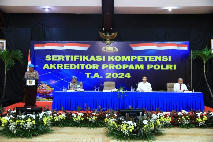 Tribunpost.co || Jakarta – Sebanyak 50 anggota Propam dari Polda jajaran mengikuti Sertifikasi Kompetensi Bintara Akreditor Propam Polri Gelombang II Tahun Anggaran 2024 pada Senin 22 Juli hingga Kamis 25 Juli 2024 di Jakarta. Kegiatan ini bertujuan untuk meningkatkan kualitas kemampuan personil anggota Propam Polri dalam rangka audit investigasi, gelar perkara, pemeriksaan, persangkaan, penuntutan dan sidang komisi kode etik.