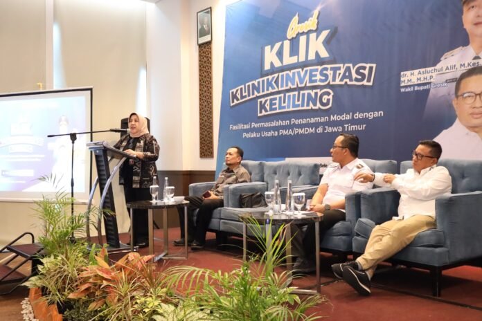 ‎Kepala DPMPTSP Provinsi Jawa Timur, Dyah Wahyu Ermawati, menjelaskan bahwa kegiatan Gresik Klik merupakan bentuk nyata kehadiran pemerintah dalam memperkuat kepercayaan dunia usaha di tengah ketidakpastian ekonomi global.